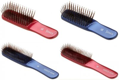Щетинки с шариками на концах насажены по 4 штуки (2 длинные и 2 короткие), что обеспечивает мягкий контакт с волосами и кожей головы. Ручка выполнена из качественных ABS-смол и очень приятно лежит в руке. Цвета: синий, красный.