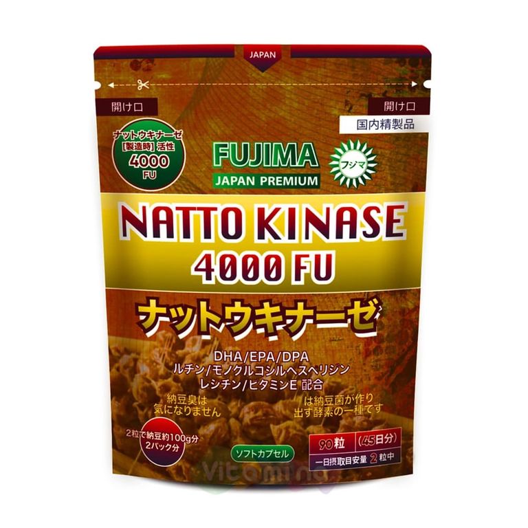 Биодобавка FUJIMA Nattokinase 4000 FU разработана для поддержания нормального кровообращения и профилактики сердечно-сосудистых заболеваний. Наттокиназа — фермент, получаемый из натто (традиционного японского ферментированного соевого продукта), способствует разжижению крови, препятствует образованию тромбов и улучшает микроциркуляцию. Дополнительно в состав входят DHA, EPA и DPA для защиты сосудов и сердца, а также витамин E и лецитин для усиления эффекта. Рекомендуется людям с сидячим образом жизни, стрессами, нарушением кровотока или склонностью к варикозу.